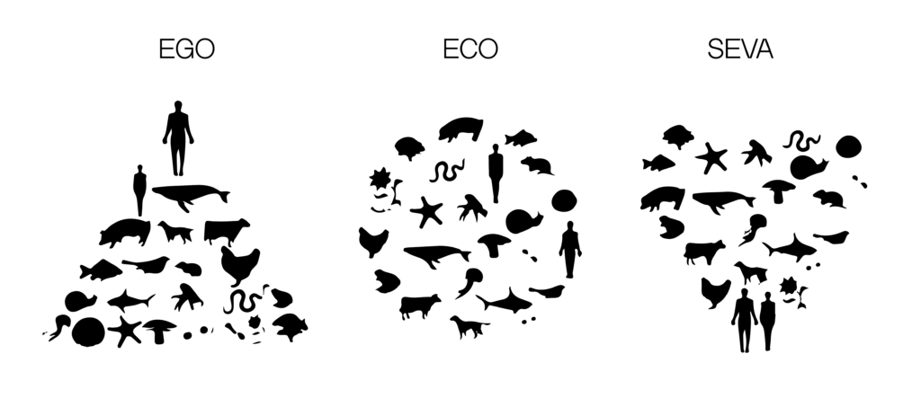 Another way to look at this mindset shift is by tracing the move from ego-centric, to eco-centric, to what some now call the seva worldview.